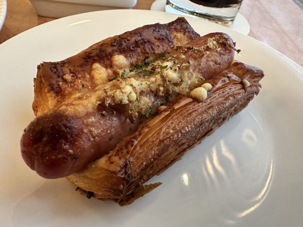 サクサクとしたクロワッサン生地にジューシーなソーセージを包み込んだボリューム満点の一品。クロワッサンの軽やかな層とソーセージの旨みが絶妙に調和し、食べ応えも十分。朝食やランチにもぴったりです。