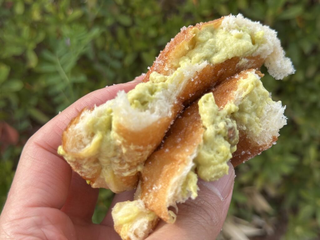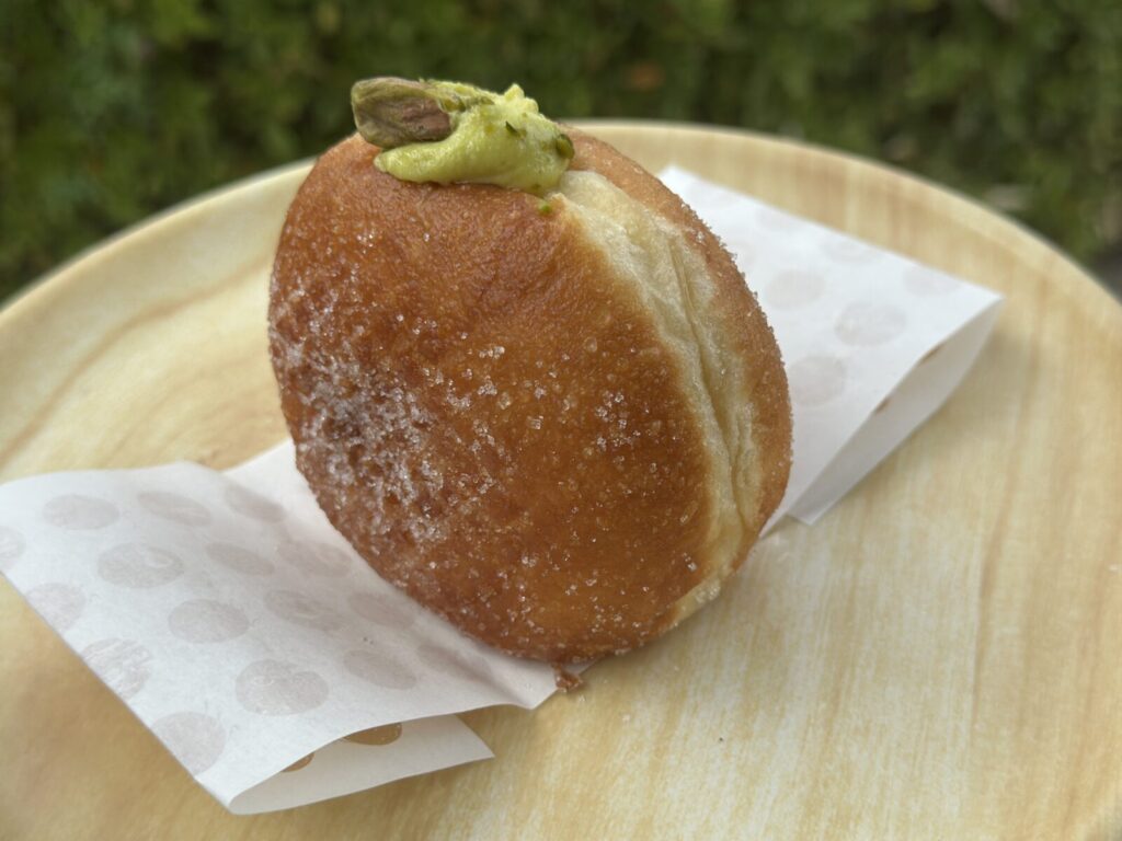私自身も大好きなフレーバー、ピスタチオのクリームがたっぷり詰まった一品です。甘すぎず、ナッツの香ばしさとクリームのコクが絶妙。ピスタチオ好きなら必ず食べてほしいおすすめドーナツです。