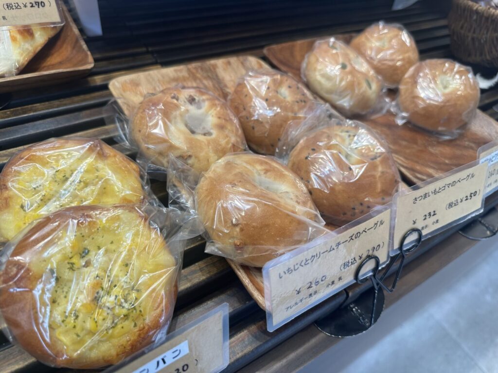 店内には丁寧に並べられたパンがあり、バゲットの美しさには思わず見惚れてしまうほど。今回いただいた「かぼちゃとクリームチーズのベーグル」や「ソーセージサルササンド」は、それぞれ異なる美味しさを持ち、素材を大切にした優しい味わいが魅力的でした。