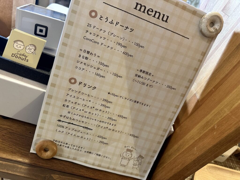ドーナツの説明や店内POPも直筆で、どこを切り取っても「大事にしているお店なんだな」と伝わってきます。
